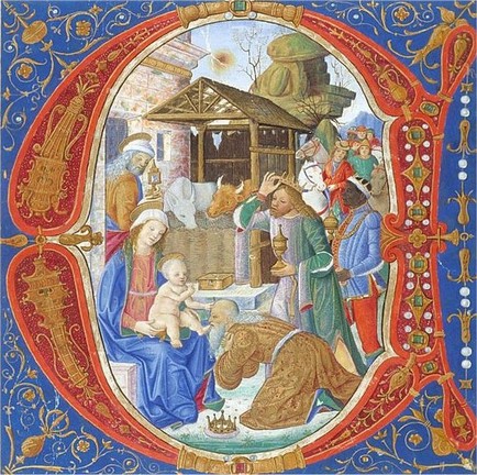 Udite le parole del re, essi partirono. Ed ecco la stella, che avevano visto nel suo sorgere, li precedeva, finché giunse e si fermò sopra il luogo dove si trovava il bambino. Al vedere la stella, essi provarono una grandissima gioia. Entrati nella casa, videro il bambino con Maria sua madre, e prostratisi lo adorarono. Poi aprirono i loro scrigni e gli offrirono in dono oro, incenso e mirra. Avvertiti poi in sogno di non tornare da Erode, per un'altra strada fecero ritorno al loro paese. Mt 2,1-12